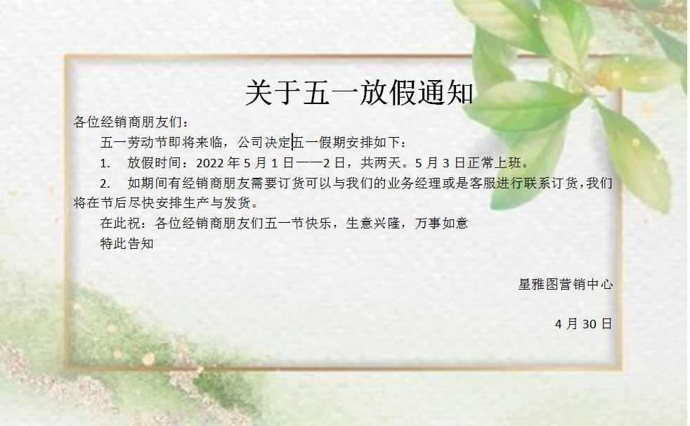 2022年“五一”放假通知